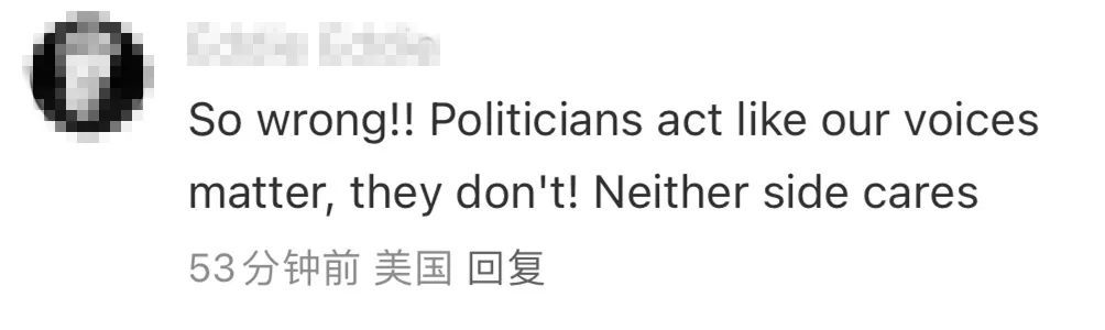 还有好意思国网友震怒评价说念,“(好意思国)政客们发达得锐利咱们的声息很热切,但他们莫得这么作念!都绝不介怀!”